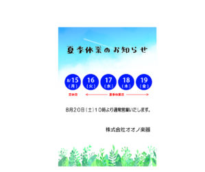 当社では、お盆から少し遅れて15日(月)から19日(金)まで夏季休業を頂きます。
